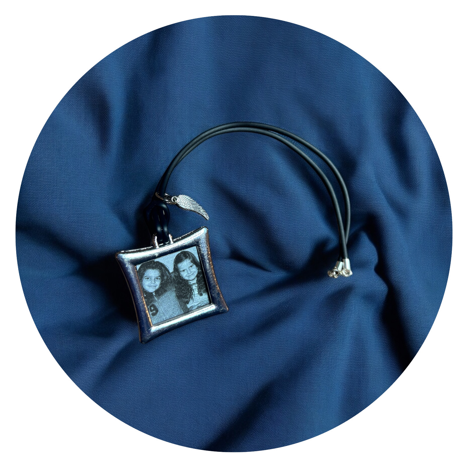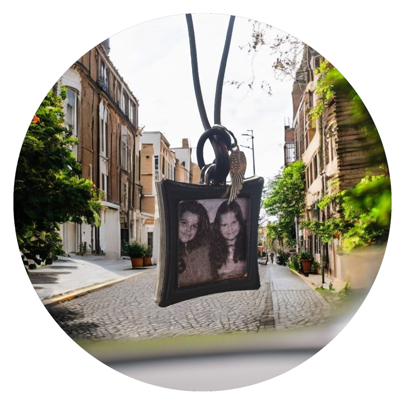 Met die nostalgie in gedachten zijn deze leuke binnenspiegelhangers ontstaan. Het is een rubberen kettinkje waaraan een klein fotoframe hangt, waar je een fotootje van je dierbaren in kunt doen. Maar als het nodig is, kan het logo van de favoriete voetbalclub natuurlijk ook! Tevens hangt er een klein vleugeltje aan, met de gedachte erachter dat af en toe een engeltje op je schouder geen kwaad kan.