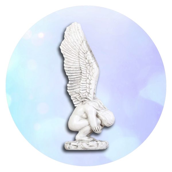 Deze engel is liefdevol en kwetsbaar, hij zit bescheiden op zijn hurken met zijn vleugels vastberaden omhoog. Engeltjes brengen natuurlijk geluk, om die reden is de uitspraak ‘hij had een engeltje op zijn schouder’ gebruikelijk wanneer iemand heel veel geluk heeft gehad.