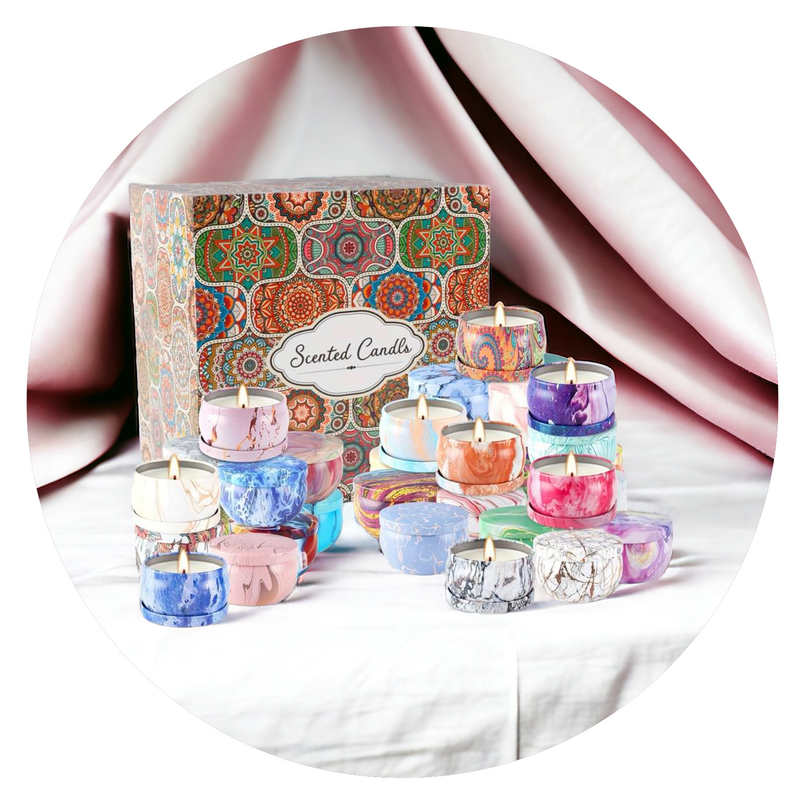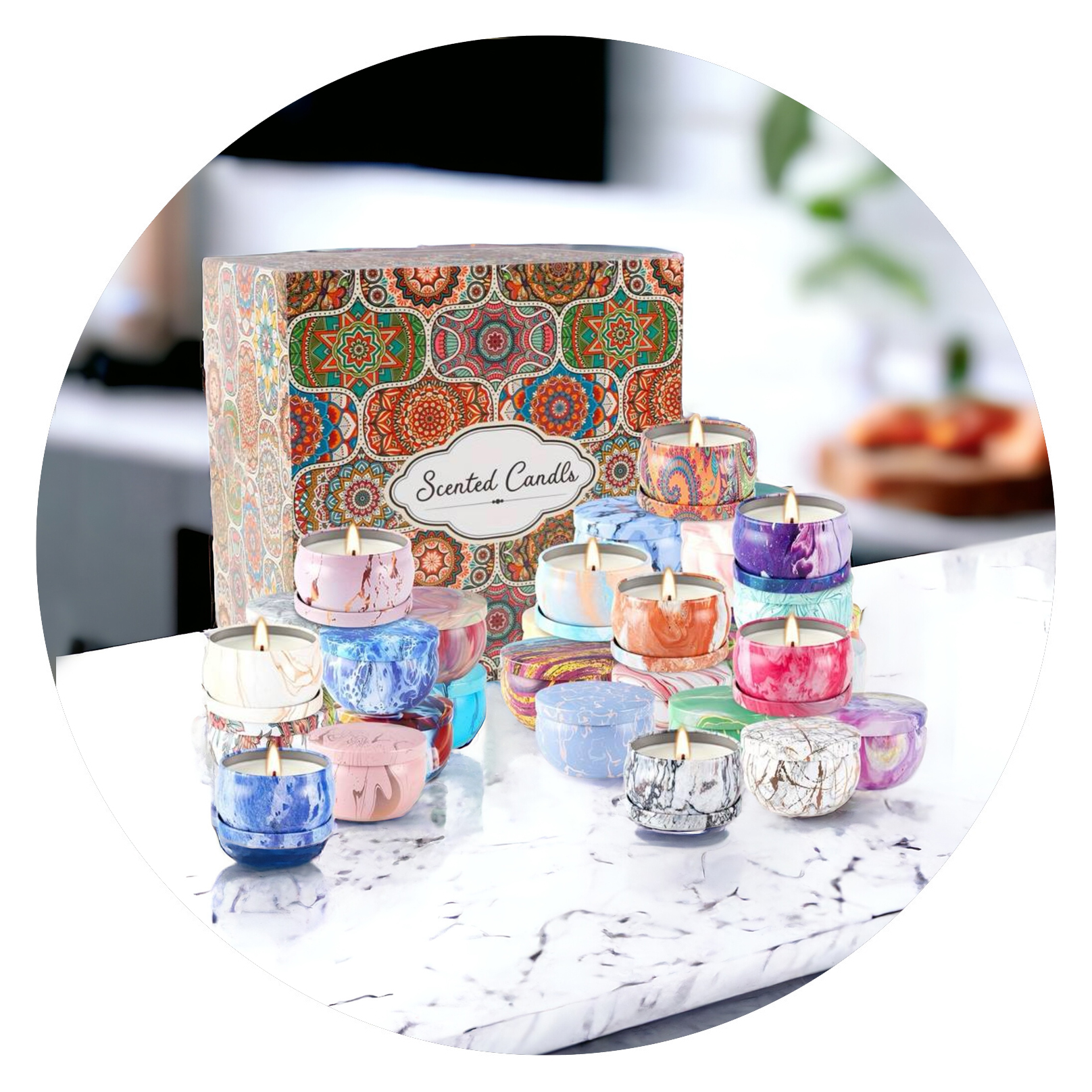 Geen enkel blikje is hetzelfde, maar allemaal zijn ze beeldschoon en de kaarsjes ruiken ook allemaal heerlijk. De blikjes zijn niet te groot, waardoor ze in ieder interieur passen. Ze hebben een gemarmerd effect of met gouden strepen, en zijn er in verschillende kleurcombinaties.