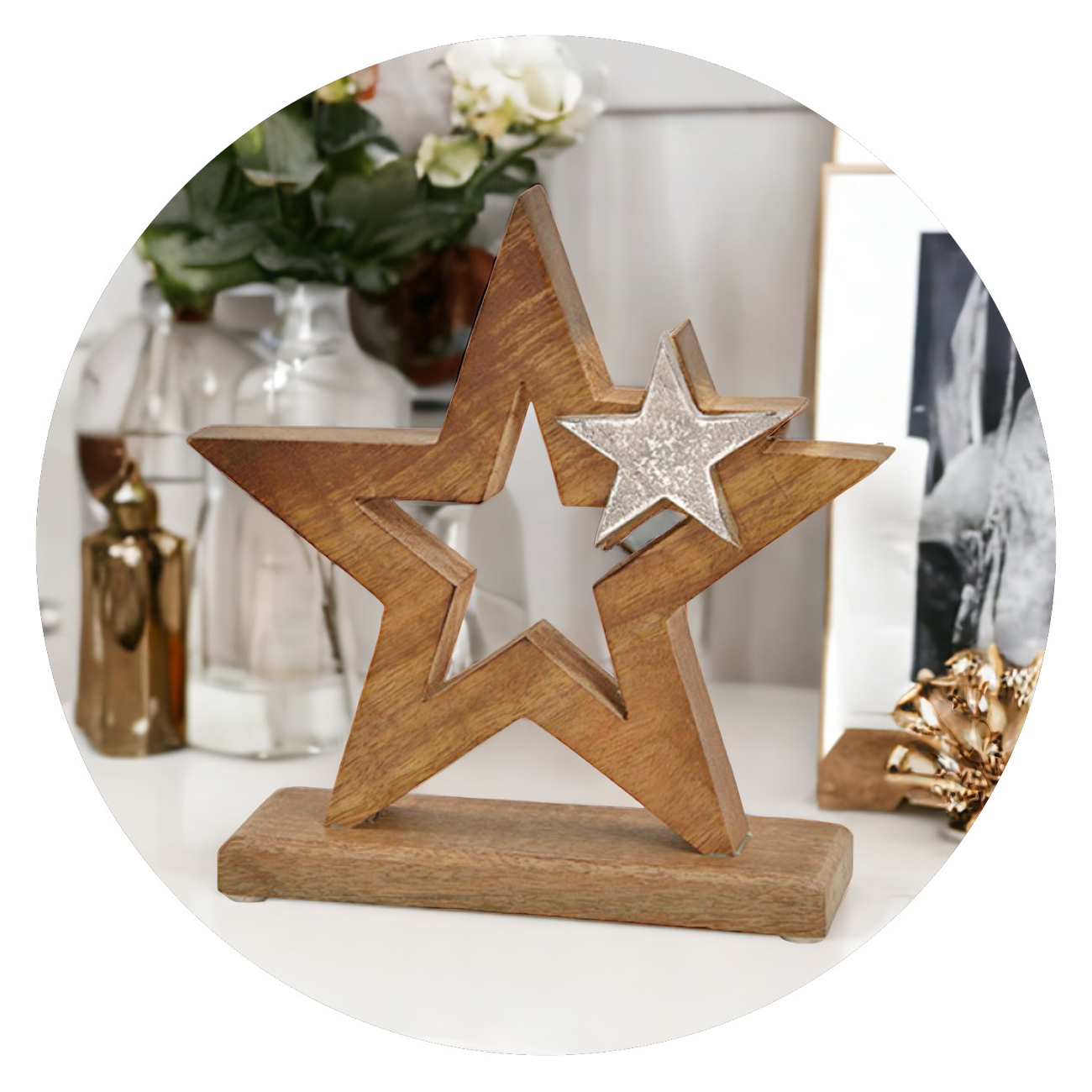 Houten decoratie | Grote ster en kleine ster
