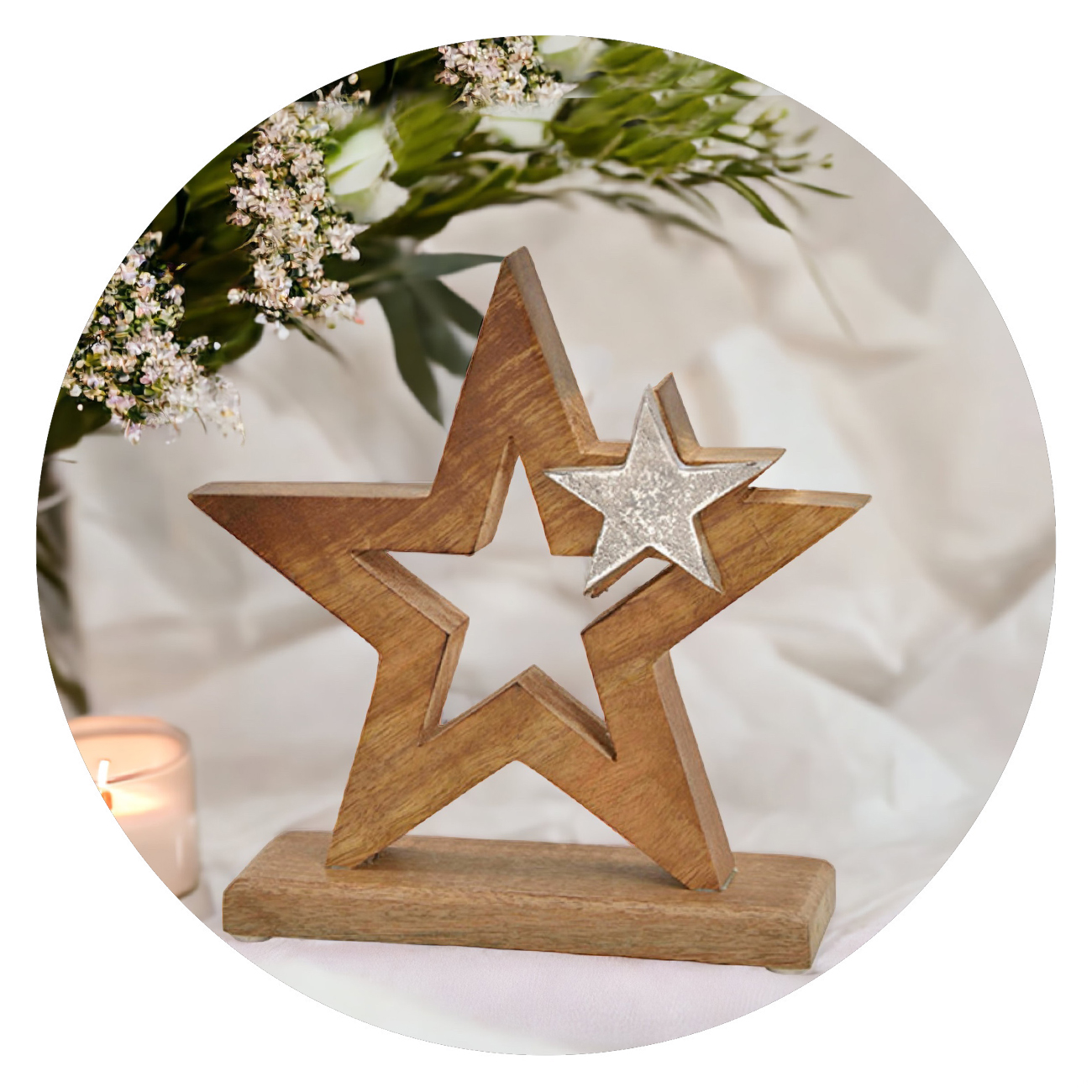 Deze standaard is gemaakt van mangohout, een robuuste, duurzame en zeer sterke houtsoort die een warme kleur heeft met prachtige kleurschakeringen. De sterren hebben een symbolische betekenis. Al eeuwenlang wordt gespeculeerd over hun betekenis, oorsprong en de voorspellende eigenschappen, maar voor veel mensen staat de ster vooral symbool voor de mensen waar we afscheid van hebben moeten nemen. Tevens staat de ster ook symbool voor kracht en prestatie, je kunt tenslotte ergens een ster in zijn. Mensen die zich door een moeilijke tijd heen moeten strijden, kunnen hier kracht uit halen.