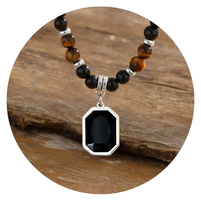Zwarte stenen worden vaak geassocieerd met bescherming, kracht en stabiliteit. De ketting kan dan ook dienen als een talisman voor persoonlijke kracht en innerlijke rust, wat een extra laag betekenis toevoegt aan de ketting. Een zwarte steen straalt ook zelfvertrouwen en kracht uit, wat het een perfecte keuze maakt voor hen die een statement willen maken.