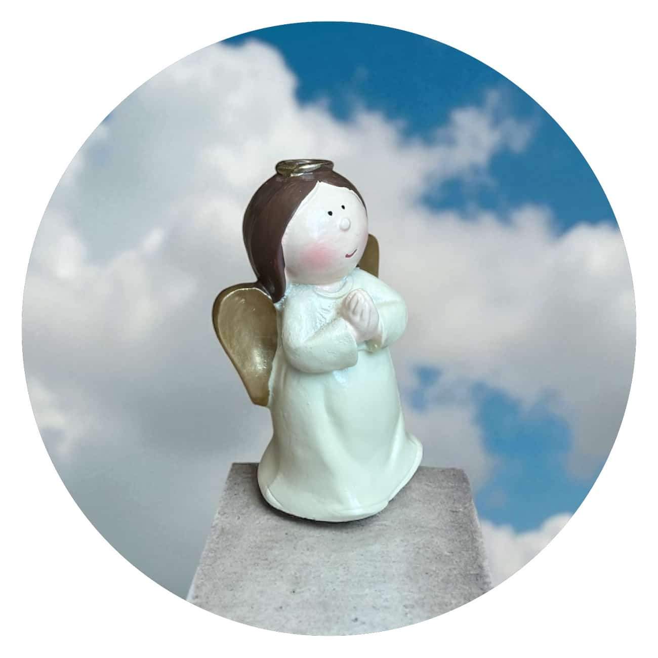 Het engeltje is gemaakt van polyresin en zorgvuldig afgewerkt, zodat elk detail tot leven komt. Je kunt dit engeltje neerzetten op een plek die je dierbaar is: bij een foto, naast een kaarsje, op je bureau of in een speciaal hoekje thuis. Het is een mooi gebaar om aan iemand cadeau te doen die een moeilijke periode doormaakt, of als symbolisch geschenk voor een nieuw begin.