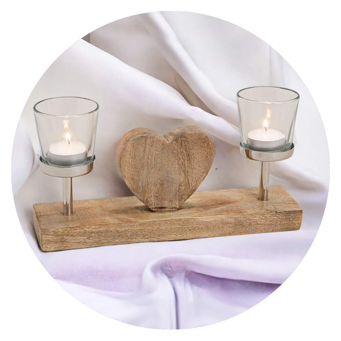 Aan weerszijden staat op een roestvrijstalen voet een glaasje waarin ruimte is voor een waxinelichtje. De donkerste dag wordt zo letterlijk een beetje lichter.