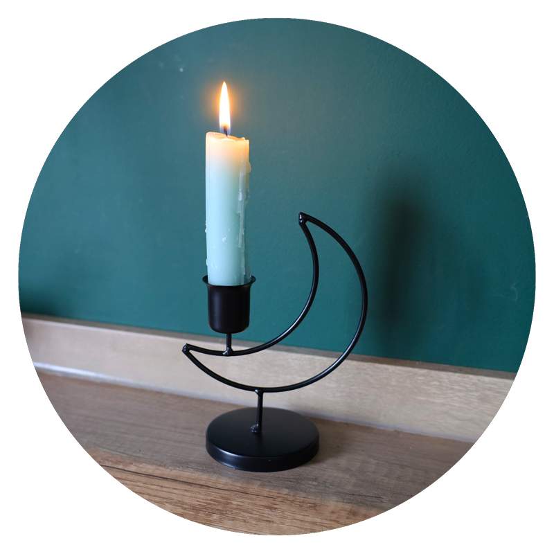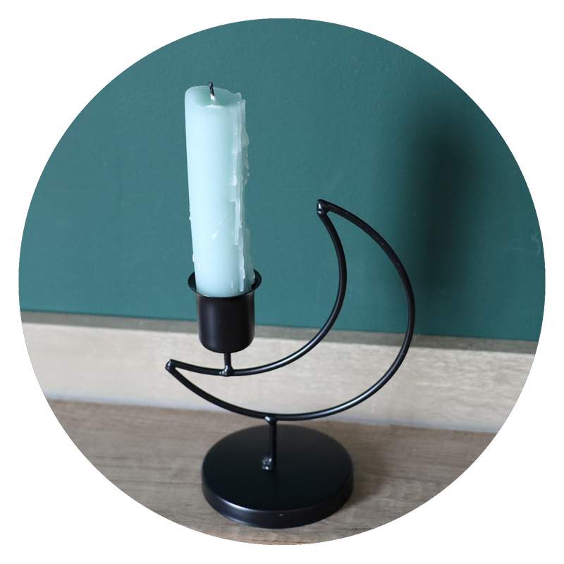 Deze leuke zwarte kandelaar in de vorm van een maan, zegt precies hoeveel je van de ander houdt. Geschikt voor dinerkaarsen.