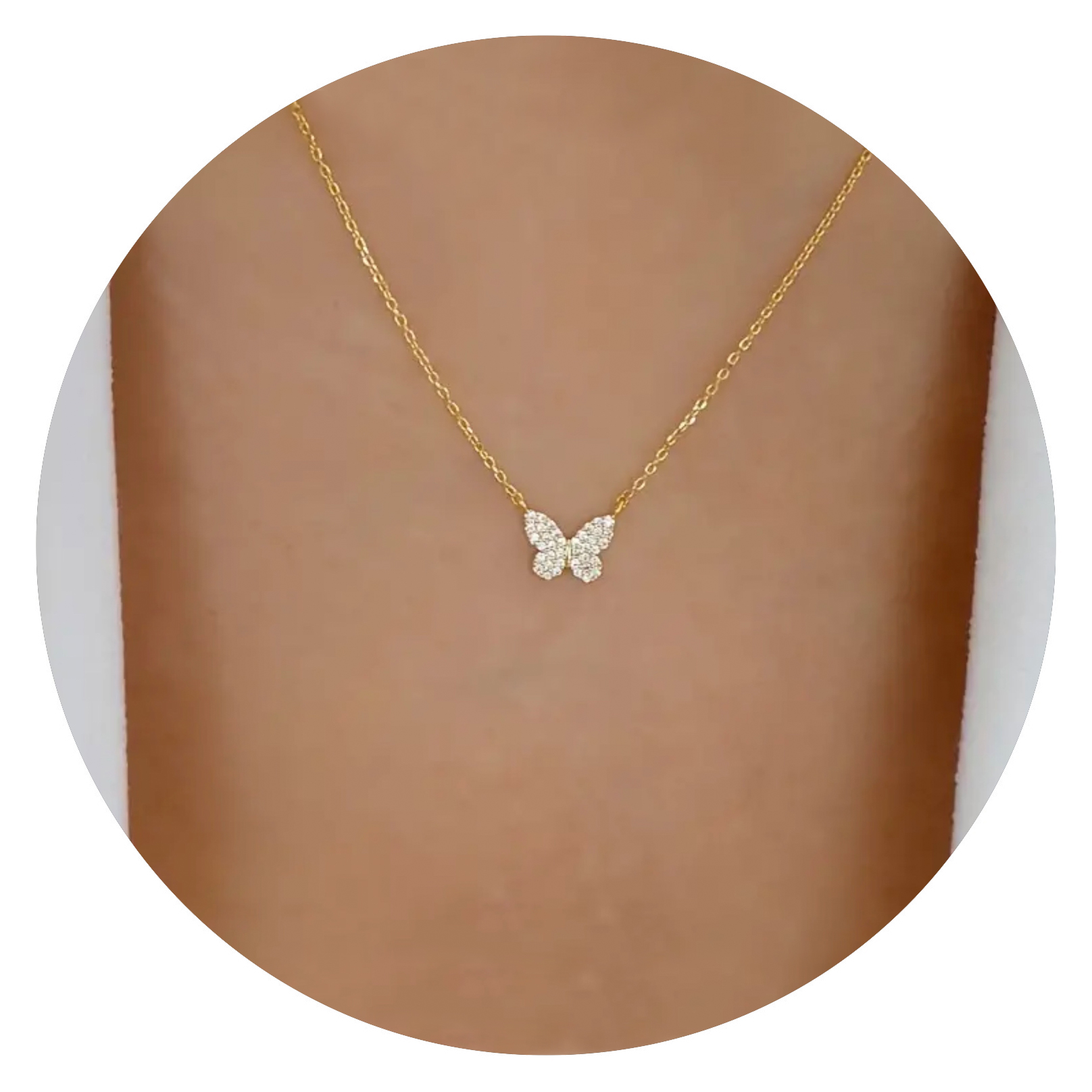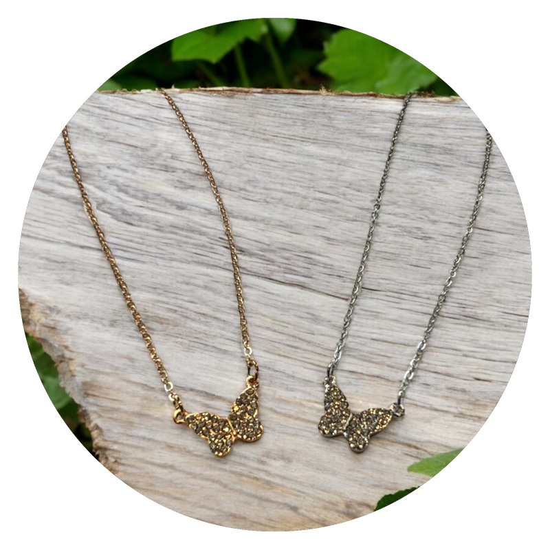 Hou je van sieraden die subtiel en toch betoverend zijn? Dit elegante kettinkje met vlindertje is precies zo’n sieraad. De fijne ketting van 40 cm lang is verkrijgbaar in zowel in de kleur zilver als goud en valt daardoor altijd mooi om de hals. Het middelpunt van deze ketting is een sierlijk vlindertje, bezet met kleine glinsterende siersteentjes die fonkelen bij iedere beweging.