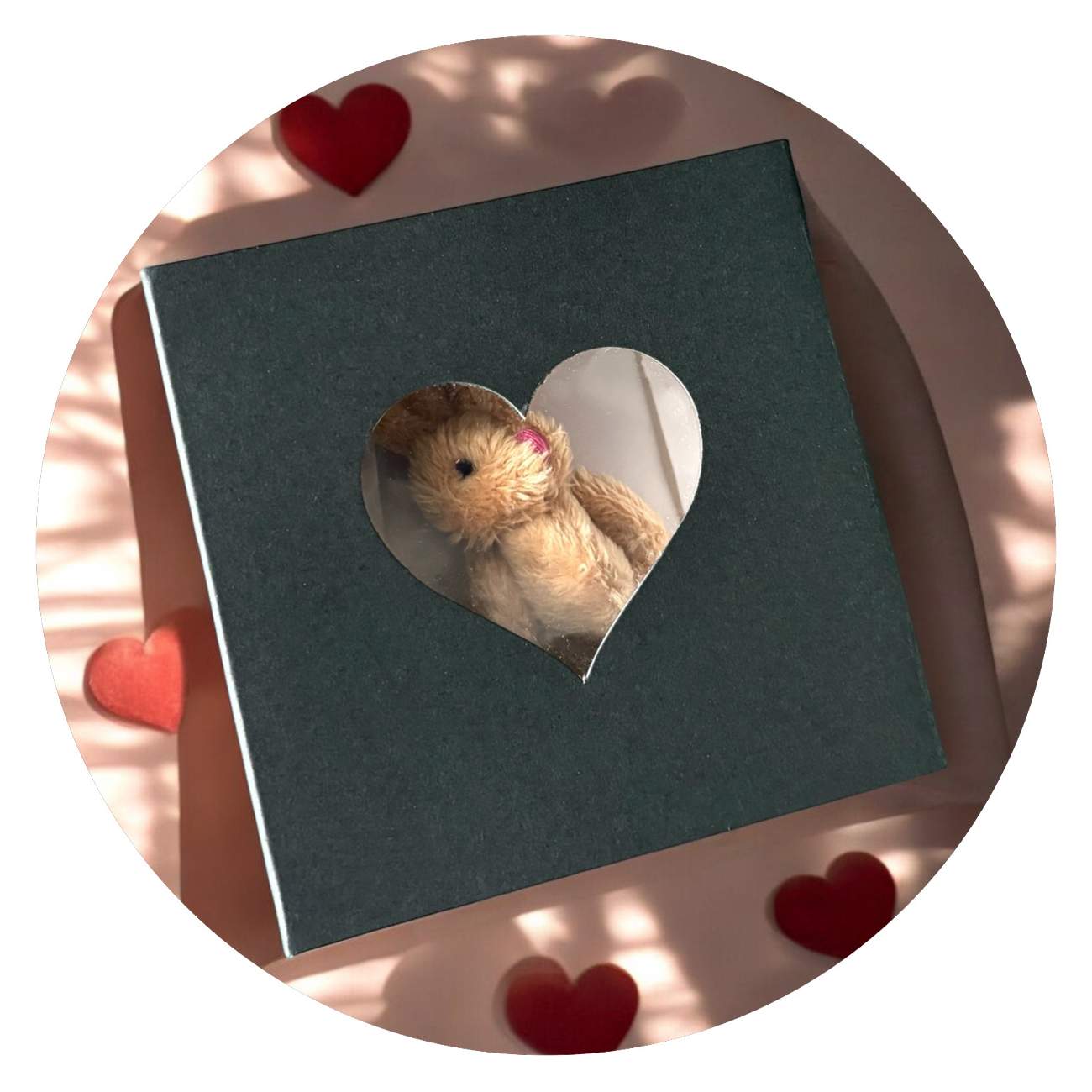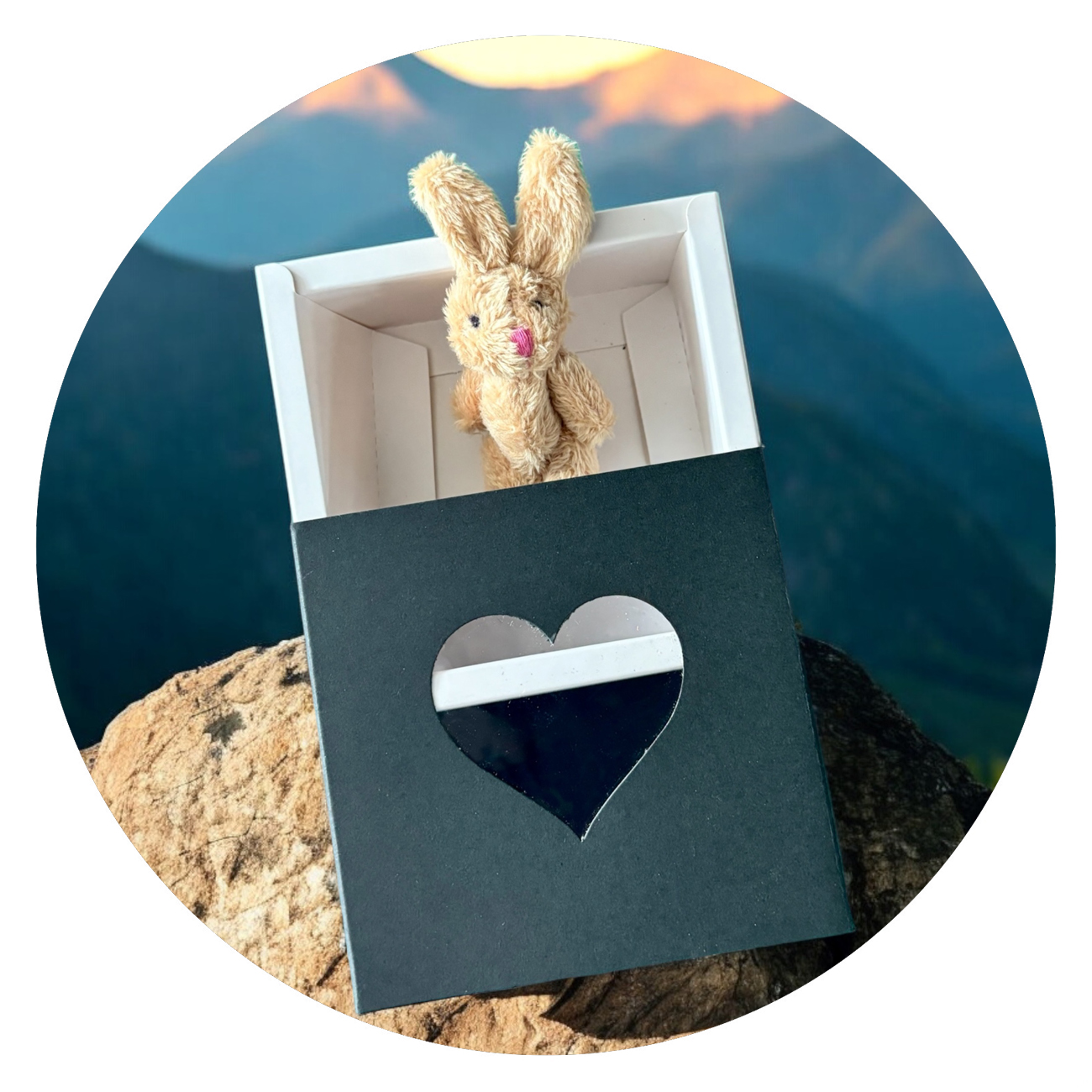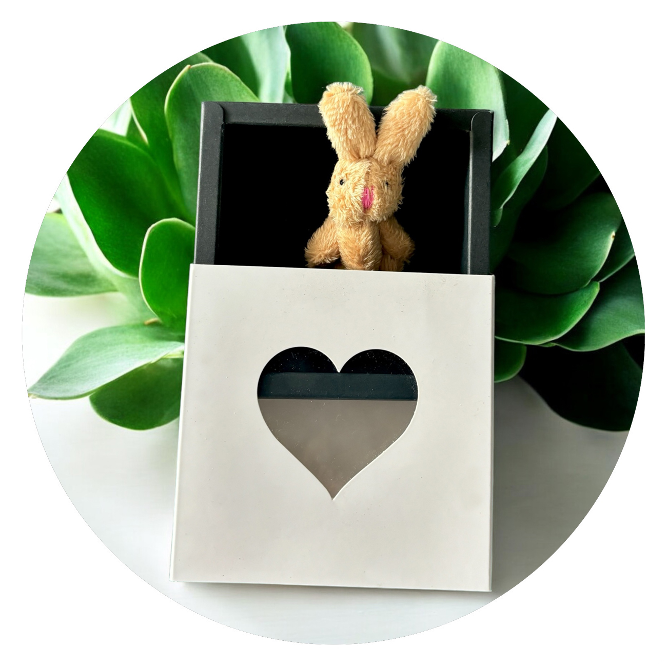 Een klein doosje, zwart met wit of wit met zwart, maar daarin een allerschattigst konijntje. Waarom? Omdat ik je een knuffel wil geven!
