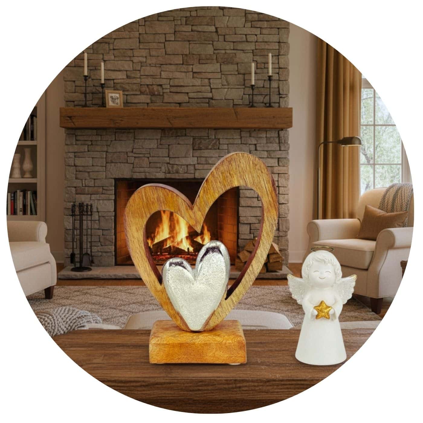 Dit houten kunstwerk is die belofte. Het grote mangohouten hart is de stevige basis, de beschermende omhelzing van de ouder, de trouwe vriend, de sterke partner. Het is de liefde die nooit wijkt.