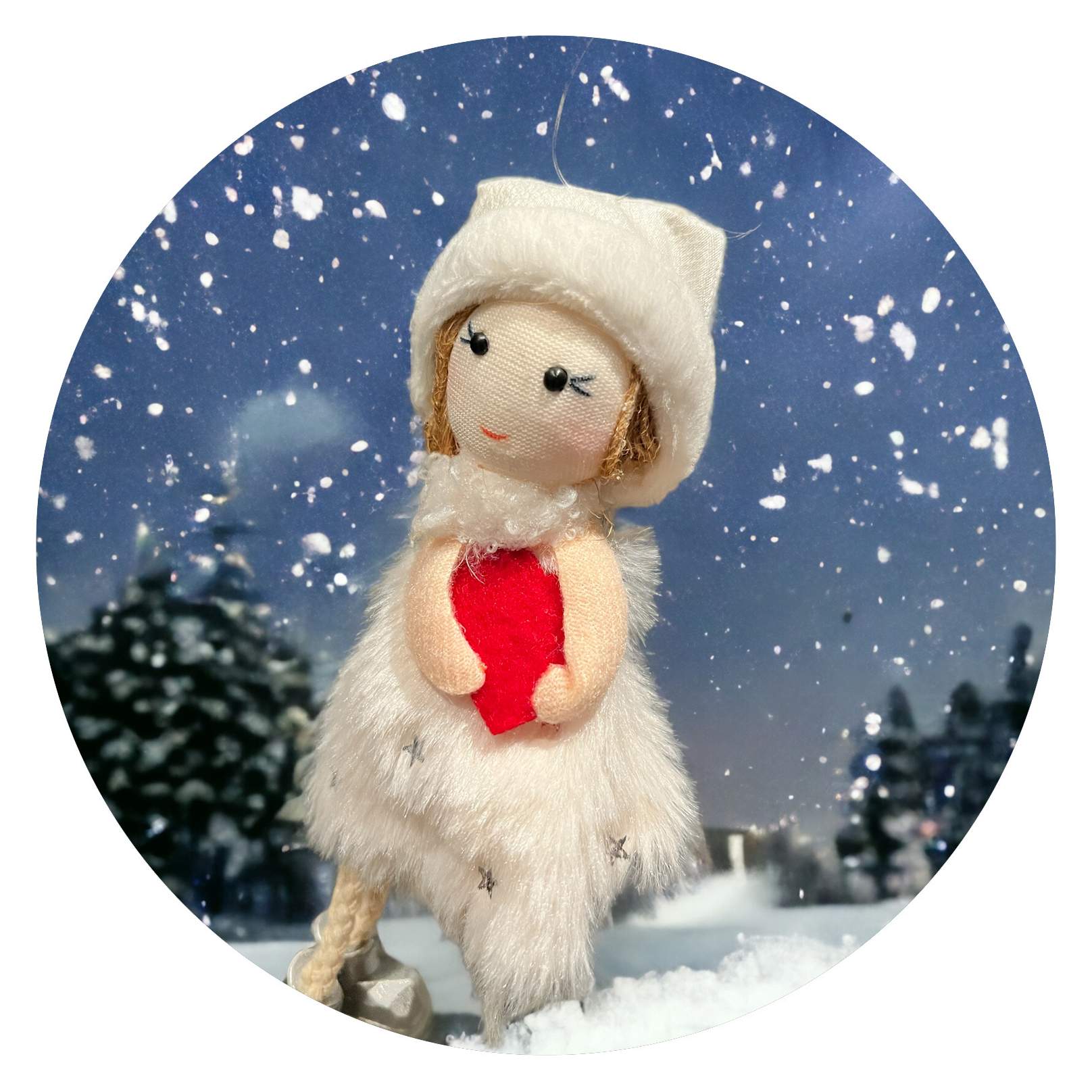 Aan haar witte mutsje zit een klein plastic lusje. Je kunt haar dus ergens aan hangen, bijvoorbeeld in je kerstboom, aan je autospiegel, maar ook aan de knop van je kledingkast of je spiegel, zodat je je elke dag gezien, gehoord en geliefd voelt.