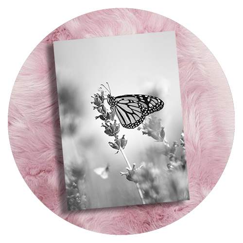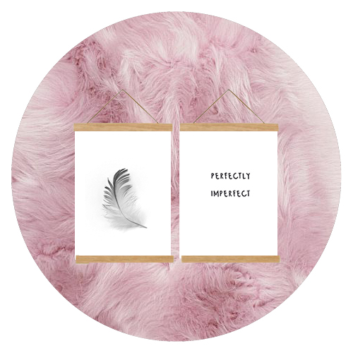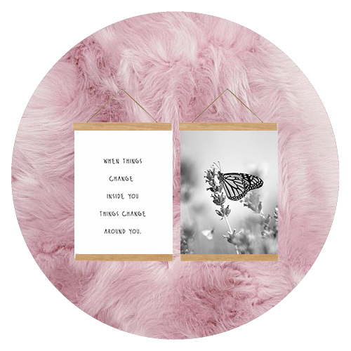 Eén poster bevat de afbeelding van een veertje, de ander heeft een inspirerende tekst.