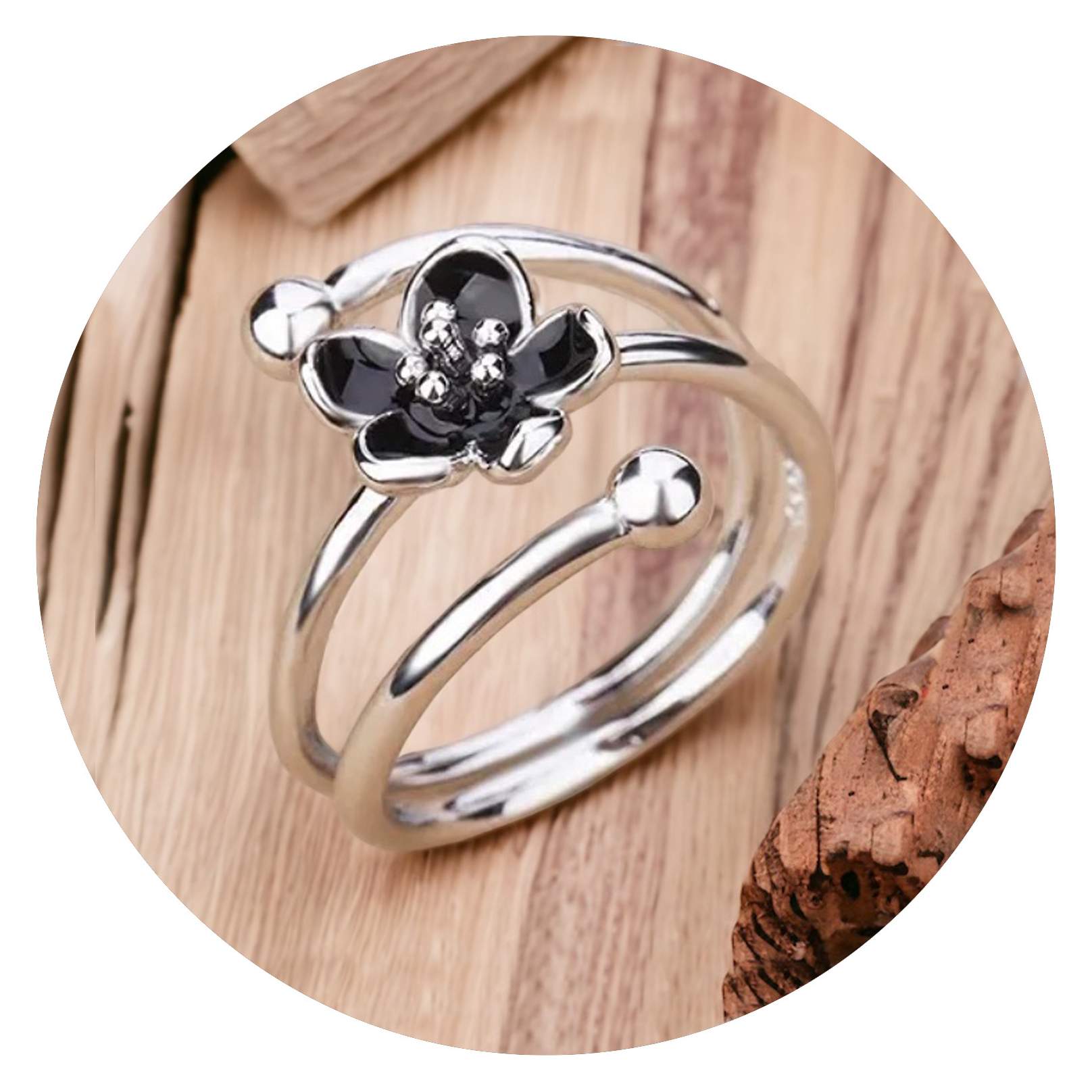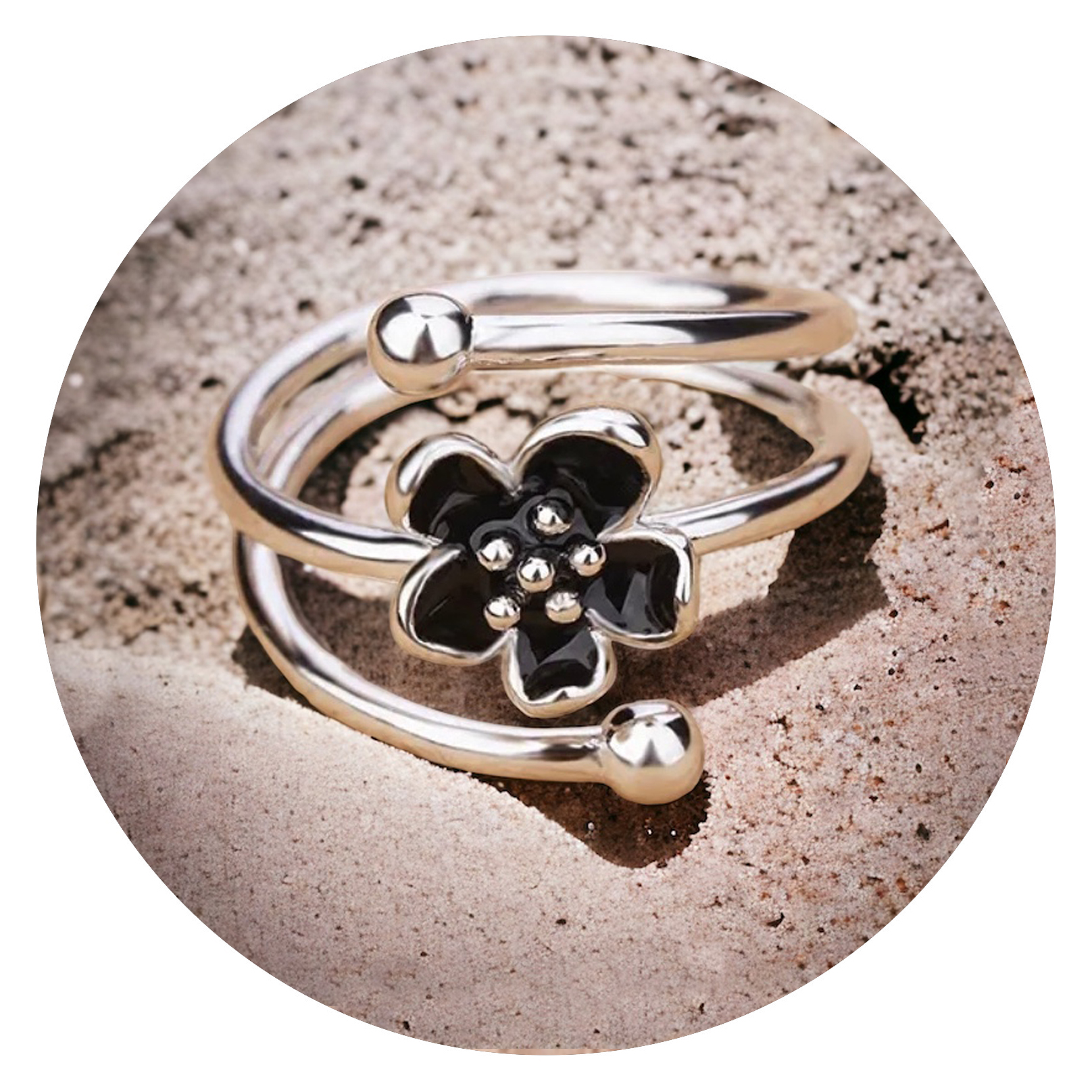 Deze prachtige verzilverde ring met een lief bloemetje, is verstelbaar, waardoor hij iedereen past.