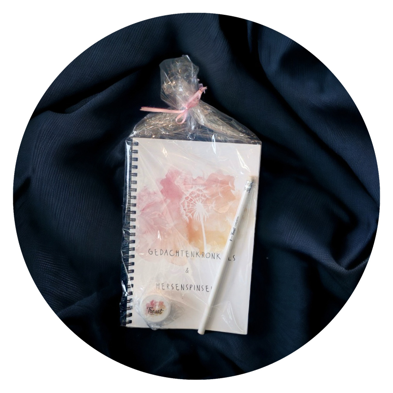 Met het notitieboekje, het bedrukte potlood en de puntenslijper heb je een complete set die ook feestelijk ingepakt wordt geleverd. Een uiterst geschikt cadeautje voor wie letterlijk veel aan zijn hoofd heeft.