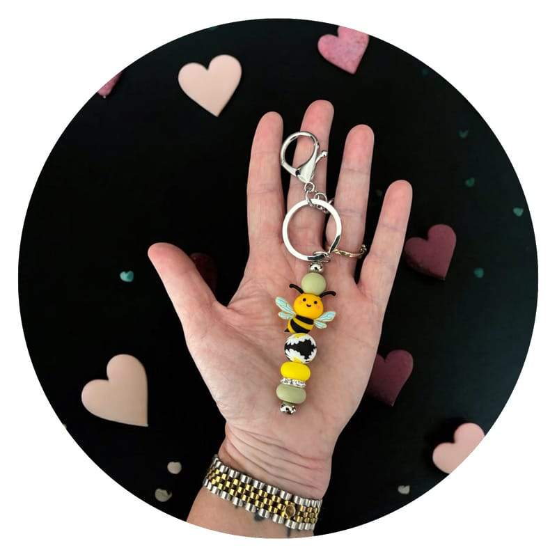 Sleutelhanger met bijtje en siliconen kralen