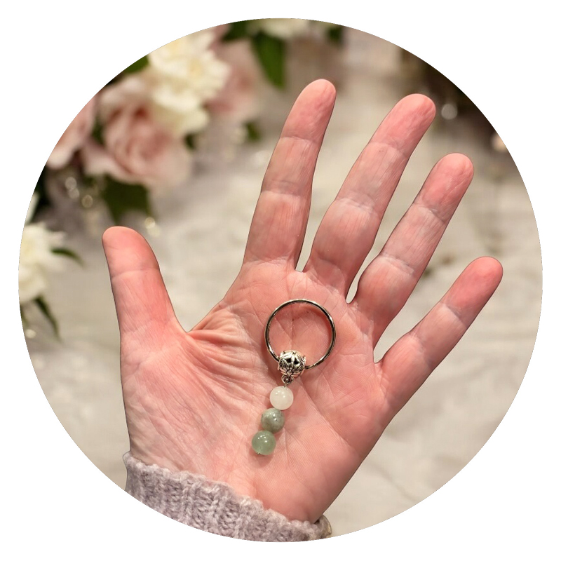 Deze bijzondere sleutelhanger draagt de kracht van een nieuw begin met zich mee. De drie zorgvuldig gekozen edelstenen – maansteen, labradoriet en groene aventurijn – vullen elkaar niet alleen prachtig aan in kleur, maar ook in betekenis.