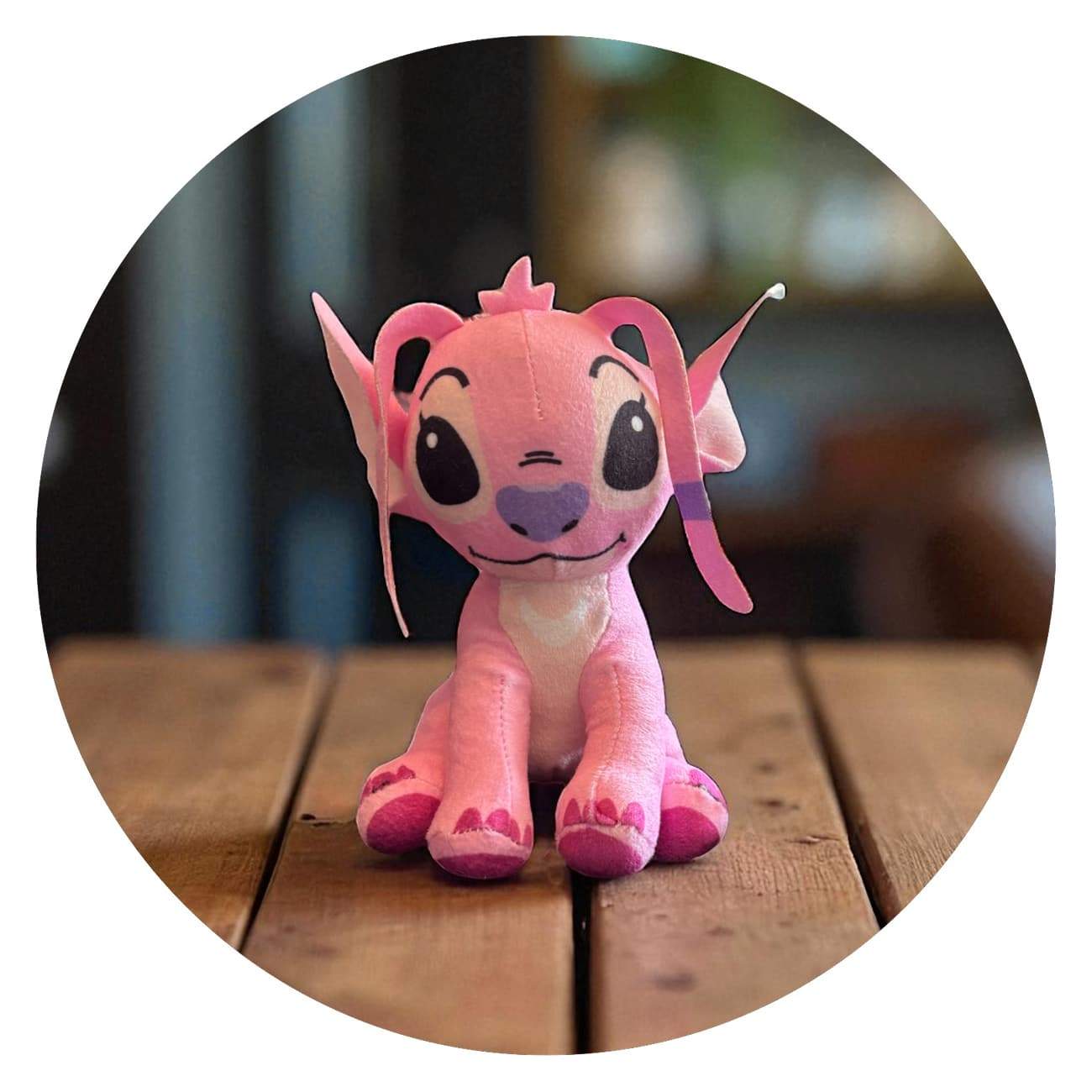 Deze lieflijke Stitch knuffel verschijnt in een speelse outfit met hippe rode tuinbroek gele pet en zachtroze voetjes. Een kleine vriend met grote oren en een nog groter hart. Zacht van pluche, licht om vast te houden en precies het soort gezelschap dat stiltes verzacht en een glimlach losmaakt.