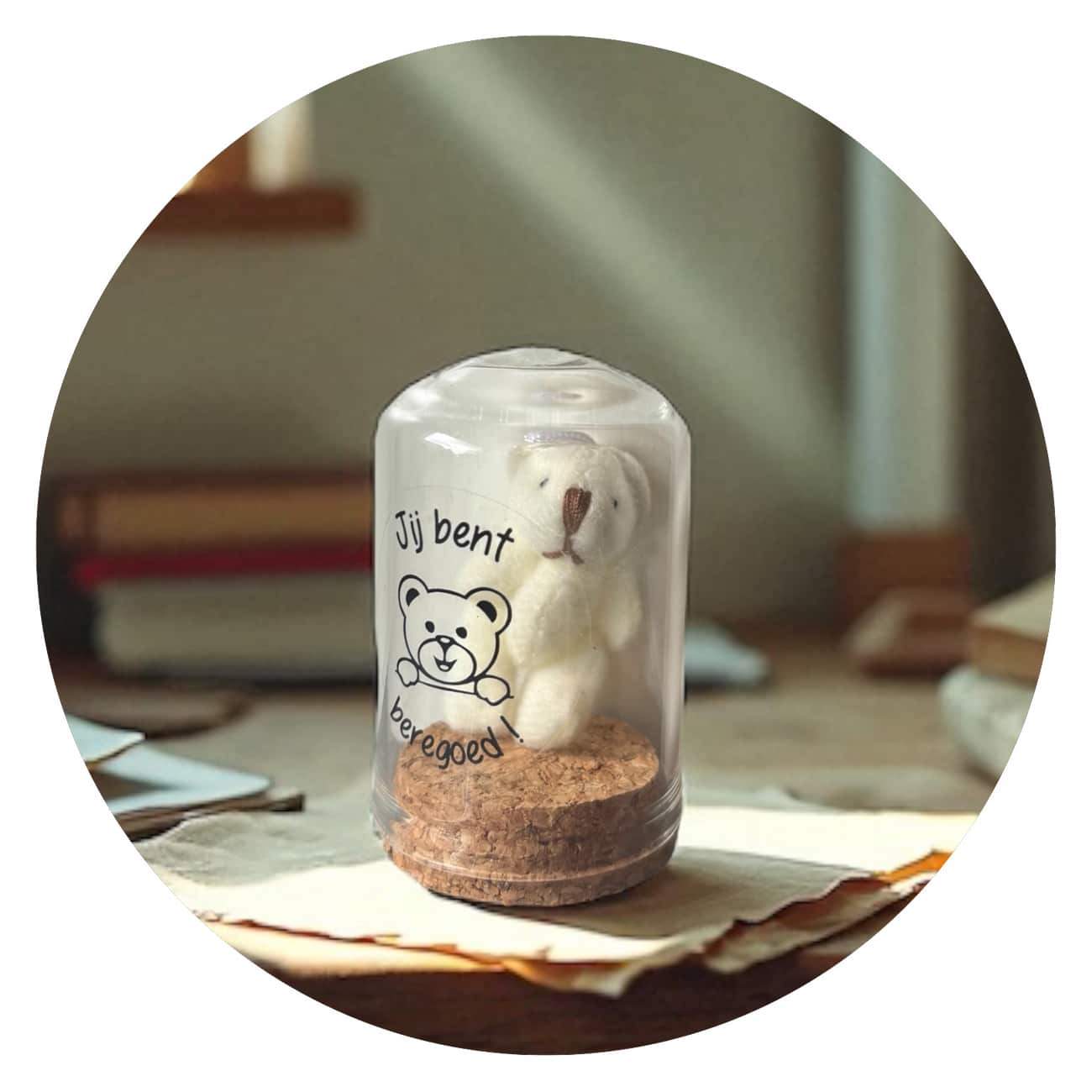 In dit glazen stolpje zit een klein, zacht beertje dat iets groots wil zeggen: jij bent écht beregoed. Voor alles wat je doet, wie je bent, of gewoon omdat je altijd klaarstaat met een glimlach of een luisterend oor.