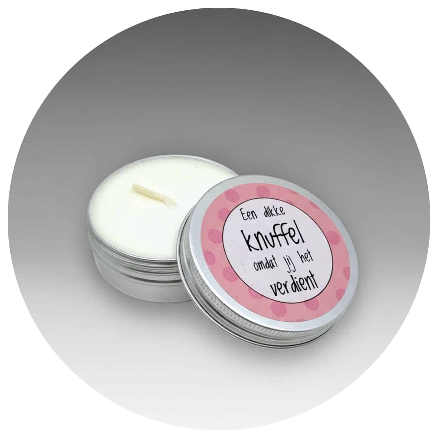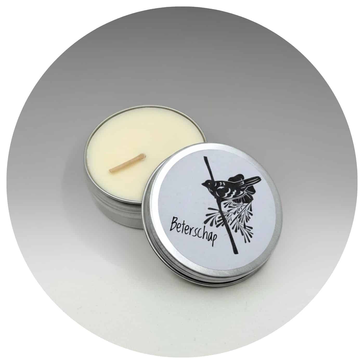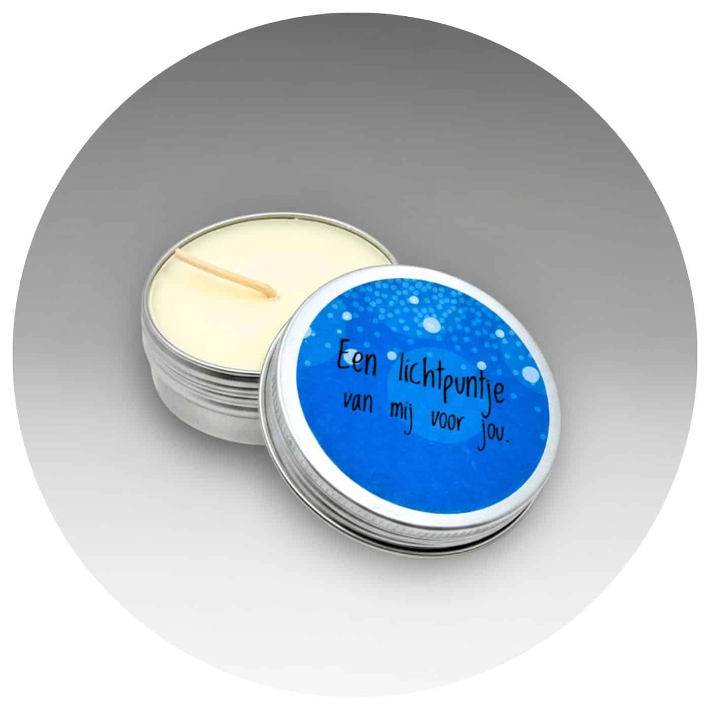 Een klein kaarsje in een blikje, met een goudkleurig sterretje. Het warme licht nodigt uit om even stil te staan, te ademen en te voelen dat er altijd ergens een ster voor je blijft stralen.