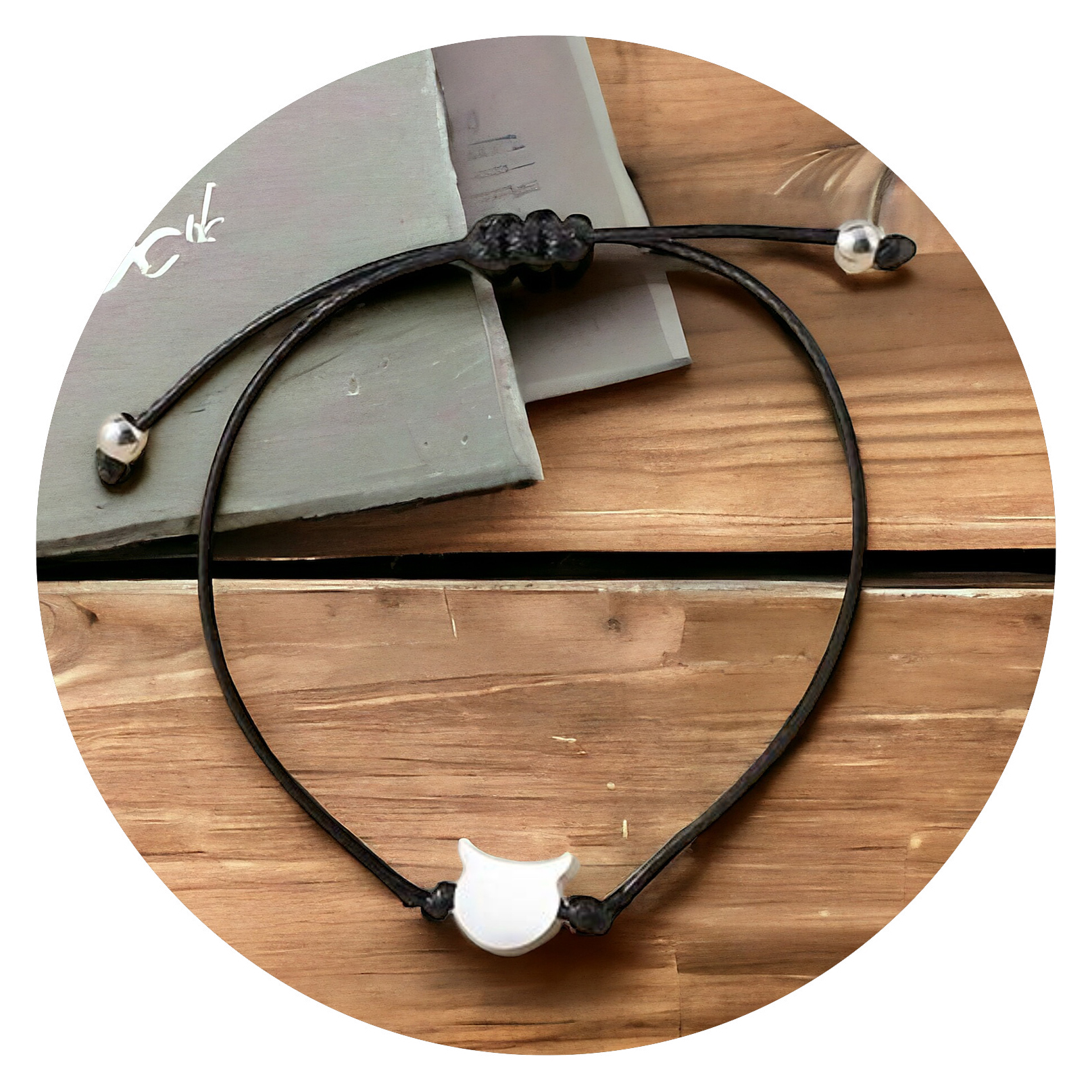 Een wensarmbandje is vaak eenvoudig en simpel, gemaakt van een touw of stuk koord met vaak slechts 1 kraal of bedeltje. Dat geldt ook voor deze uitvoering. Het is een leren vetertje met een poezenhoofdje. Zeer geschikt voor poezenliefhebbers en… kattenkopjes!