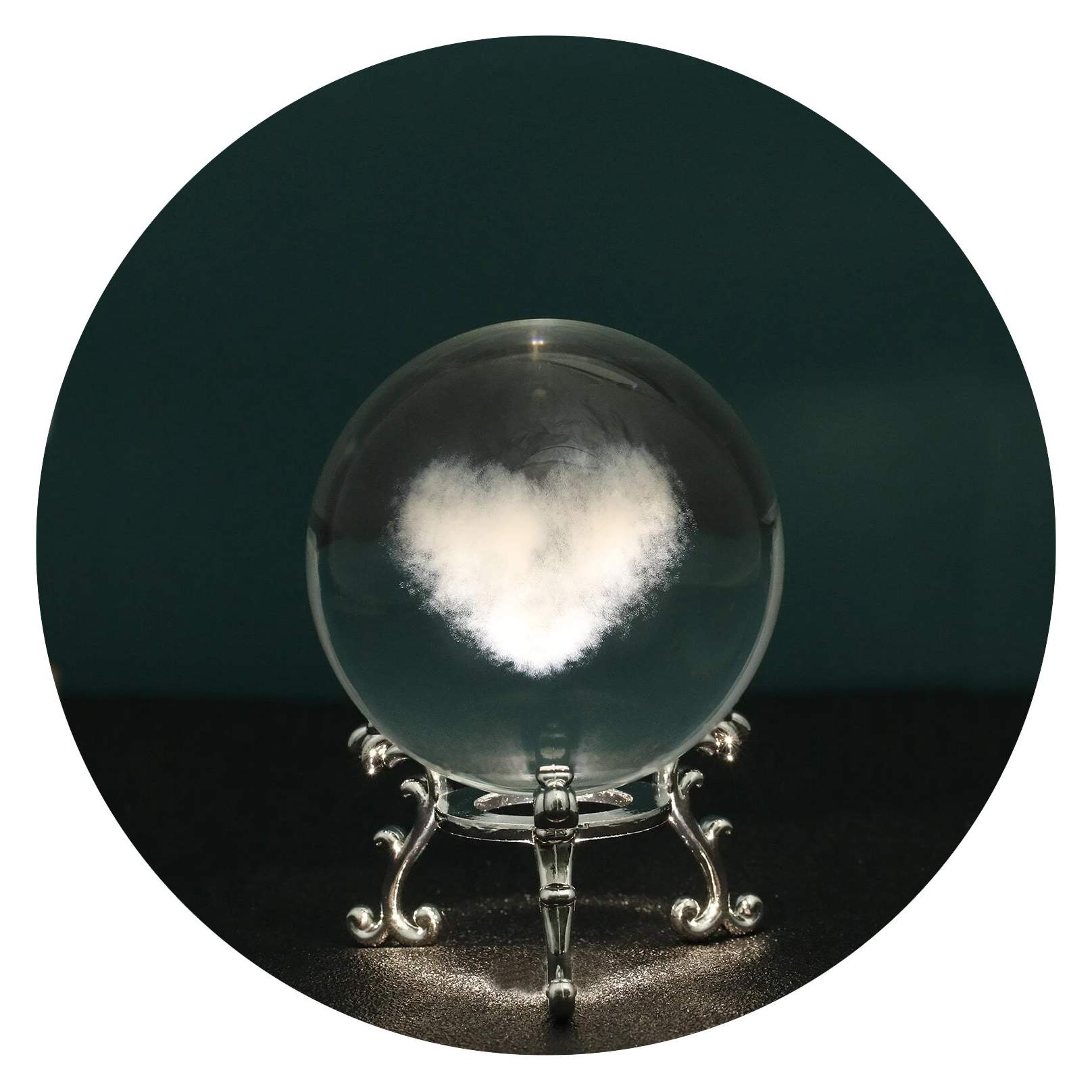 Dit wolkje heeft de vorm van een hartje en zit in een transparante bol.