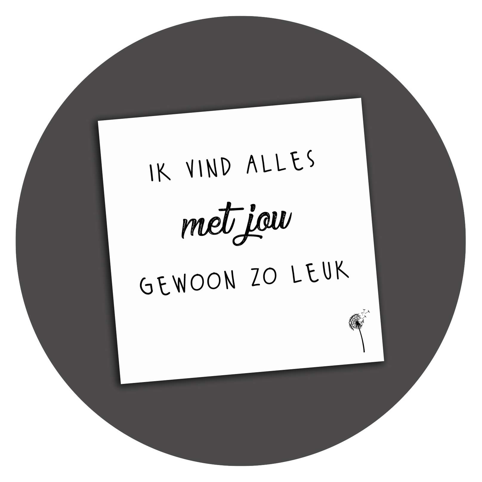 Vierkante kaart Zo Leuk, 10×10 cm, enkelzijdig bedrukt, 300 grams mat karton, afgewerkt met UV-lak.